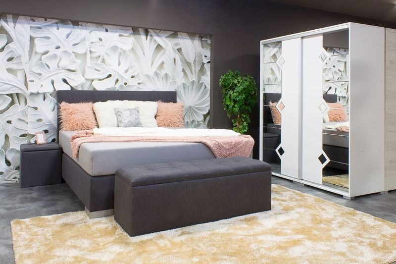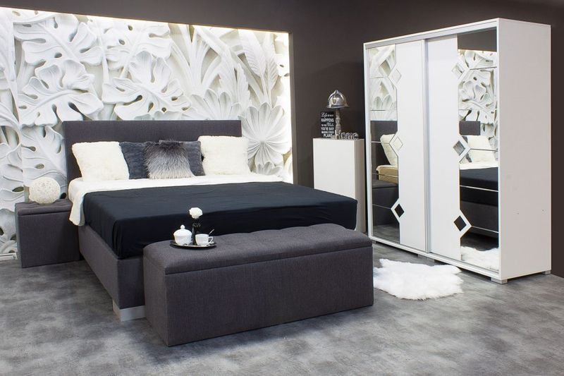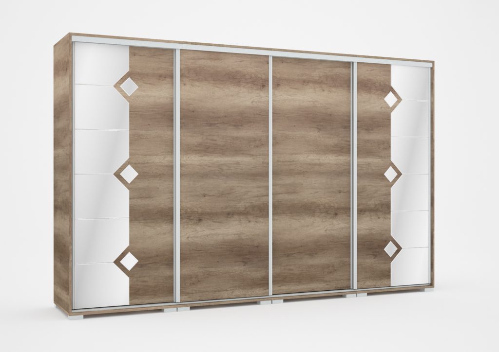 Diamond gardróbunk igazi „ékszer” lehet a hálószobájában. 7 méretben és 16 színben kapható. Külsejét tekintve egy nagyon fiatalos, nőies, elegáns gardrób. Az ajtón található szögletesen vágott tükrök jellegzetes karakteres megjelenést adnak a gardróbnak. Opcionálisan választható termékek: – sarokpolc – tolóajtós sarokelem – fózolt tükör – tükör – fiókos alsó magasító – tolóajtós felső magasító.