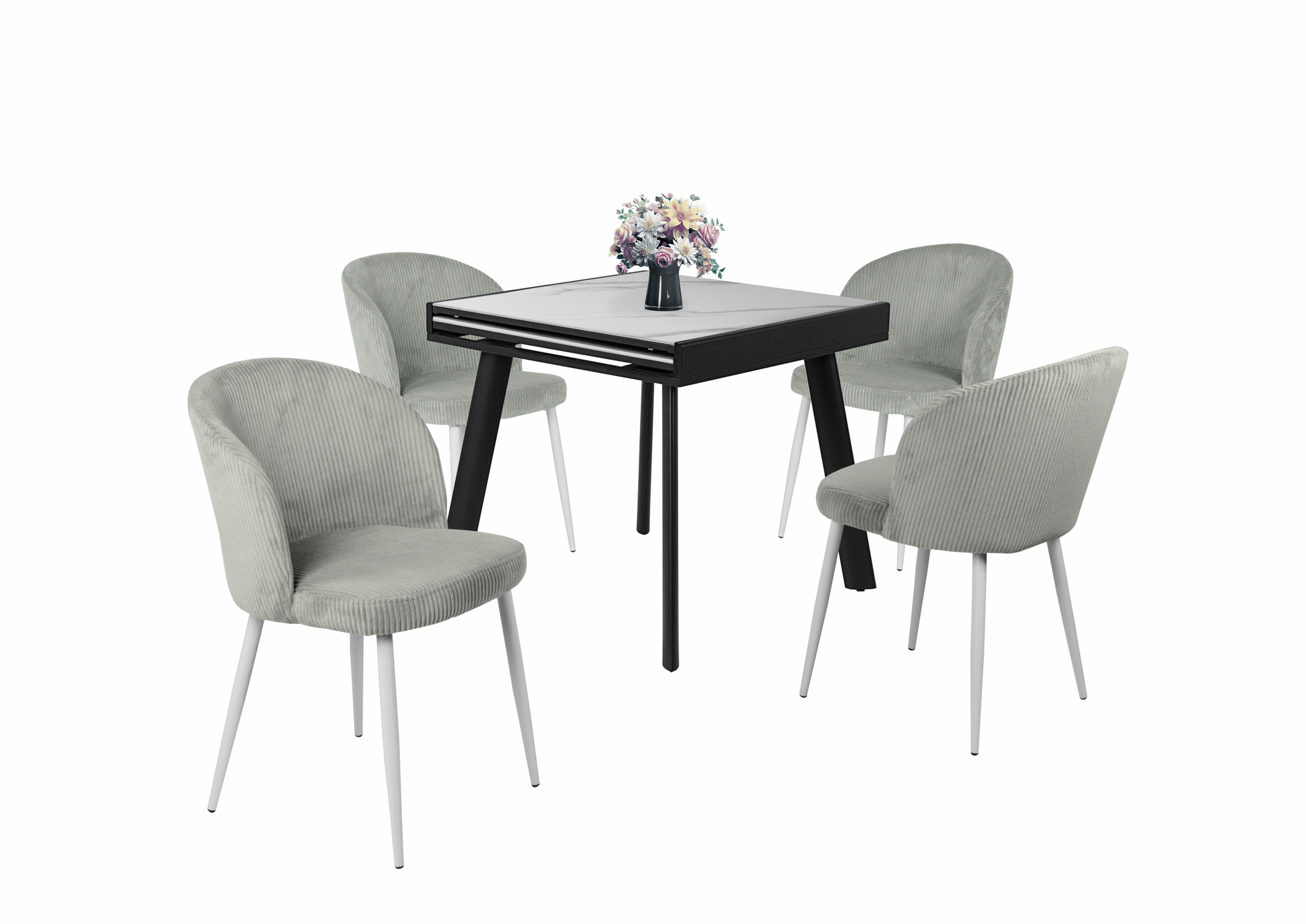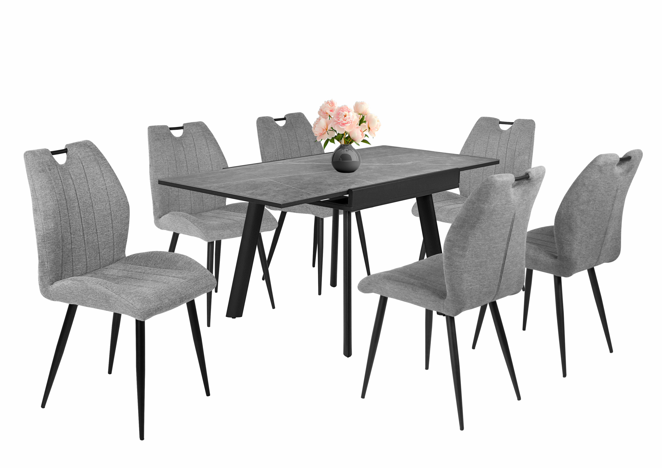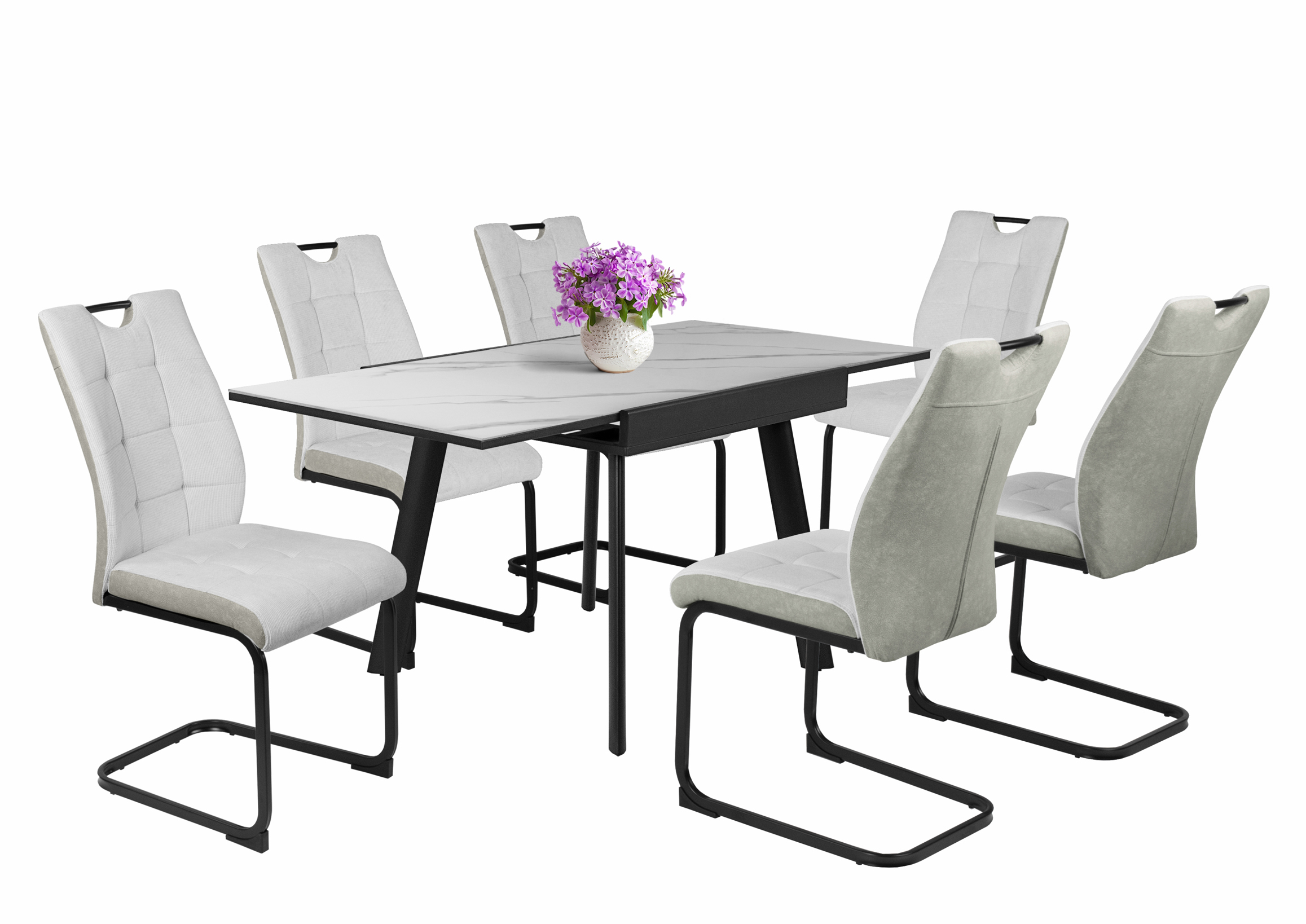 A Diaz egy húzó-toló, emelőszerkezetű étkezőasztal. Asztallapja 0,6 cm vastag szinterezett kőből készült, minden szinterezett kőlap mérete 80*80 cm.A vezetősínek műanyagból készültek, alumínium külső borítással. Fekete porfestett fém láb. Az asztallap hátulján 2 fém biztonsági retesz található. Az asztallábak alján állítható lábak vannak – ezek szöge a padlótól függően változtatható, hogy az asztal stabil maradjon. Szinterezett kő asztallap tulajdonságai: magas hő- és kopásállóság, alacsony vízfelvétel, UV-állóság és lerakódásgátló felület.