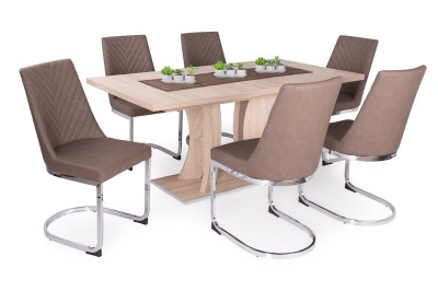 A széles lábak nagyobb stabilitást kölcsönöznek Félix asztalunknak, amely tökéletesen mutat modern, valamint klasszikus stílusú székekkel. Ha vendégek érkeznek, akkor is kényelmesen elférnek majd, hiszen a 135×90 cm-es, 6 személyes asztal további 35 cm-rel bővíthető. A színválaszték kimondottan ...